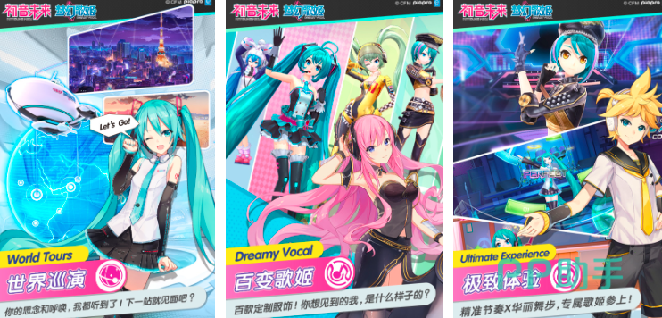 初音未来大家都很熟悉的二次元人物,这款音乐游戏融入了初音未来,成为初音未来并参加更多的巡演。世界巡演的过程很精彩,在全球不断巡演时有其他小伙伴为你助阵,跟着独创的音乐来演奏乐曲。还有极致编舞,在舞台上展示自己,华丽的舞台以及炫酷的时装随心的搭配,在舞台上展示给其他人物视觉盛宴,看起来超级炫酷和眼花缭乱!
