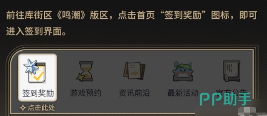 《鸣潮》签到入口位于库街区《鸣潮》版区,库街区是游戏的主要布局,汇集了大量关于游戏的信息和活动公告。玩家会在这里把握最新游戏动态和活动细节,而签到活动就是其中之一。玩家进入游戏并把它引进库街区“鸣潮”版区。在该版区的主页上,玩家可以看到一个“签到奖励”标示。该标示通常位于页面的显著部分,便捷玩家快速查找并进入签到页面。点击此标示,即可进入签到页面,慢慢开展日常签到之行。