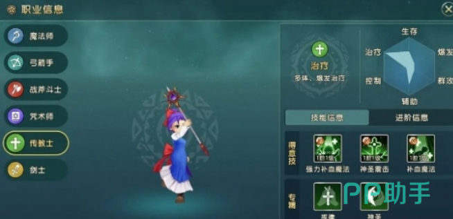 这个角色拥有着多种强大的技能,比如他的神圣震击技能攻击力超级强,还能根据生命值对敌人造成额外伤害,真是攻守兼备的好帮手。而说到治疗,传教士的“补血魔法”和“强力补血魔法”可是名不虚传。前者能快速为单个队友补血,后者则能同时救治多个队友,让团队在战斗中更持久。