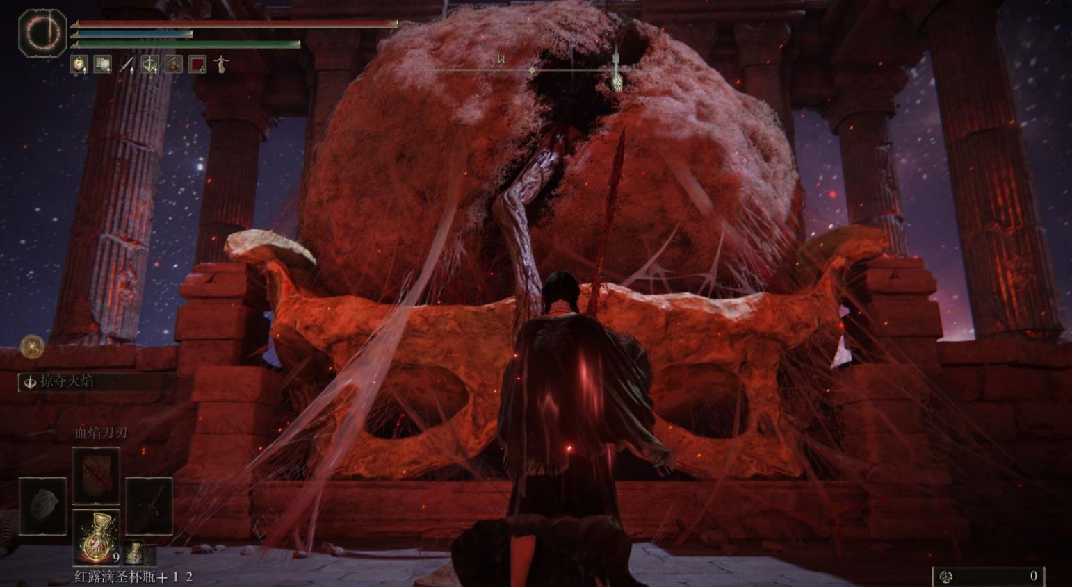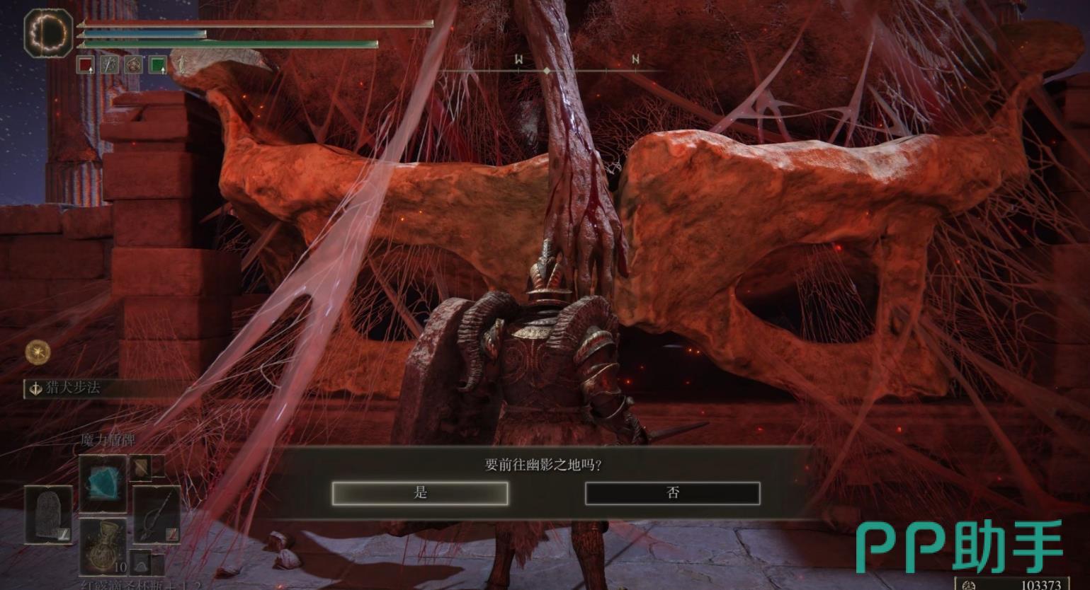 想要真正体验到《黄金树之影》,首先需要击败本体里的两个关底boss,分别为碎星拉塔恩和鲜血君王蒙格。接下来,大家会在boss的首领房间当中看到一个会不断跳动的大茧,这里就是dlc的入口处了。接近这个大茧,和茧进行互动就可以进入《黄金树之影》的游戏内容当中。