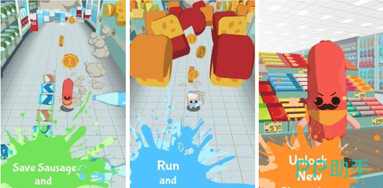 这款以美食为主题的跑酷游戏十分猎奇,玩家要操控可爱的拟人化食物奔跑在超市的货架之中,跑酷途中要收集金币并躲开形形色色的障碍,灵活生动的美食形象看上去很有喜感,三维立体的背景彰显出unity引擎强大的功能,令人捧腹的跑酷过程区别于其他的跑酷类型手游,你能控制可口的拟人化美食跑多远呢。