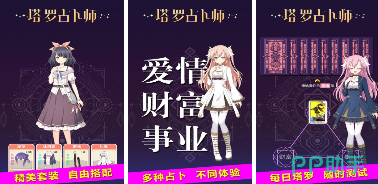 塔罗占卜师是款具有抽卡和换装元素的精品卡牌手游,超多的套装和配饰给大家提供了自由搭配装扮的机会,占卜与换装结合的玩法无疑让本作充满了随机性,抽取塔罗牌还可以进行占卜满足玩家的小欲望,二次元精致的立绘技术让这款塔罗牌手游更有观赏性,各位塔罗牌爱好者试试这款特殊的装扮手游吧。