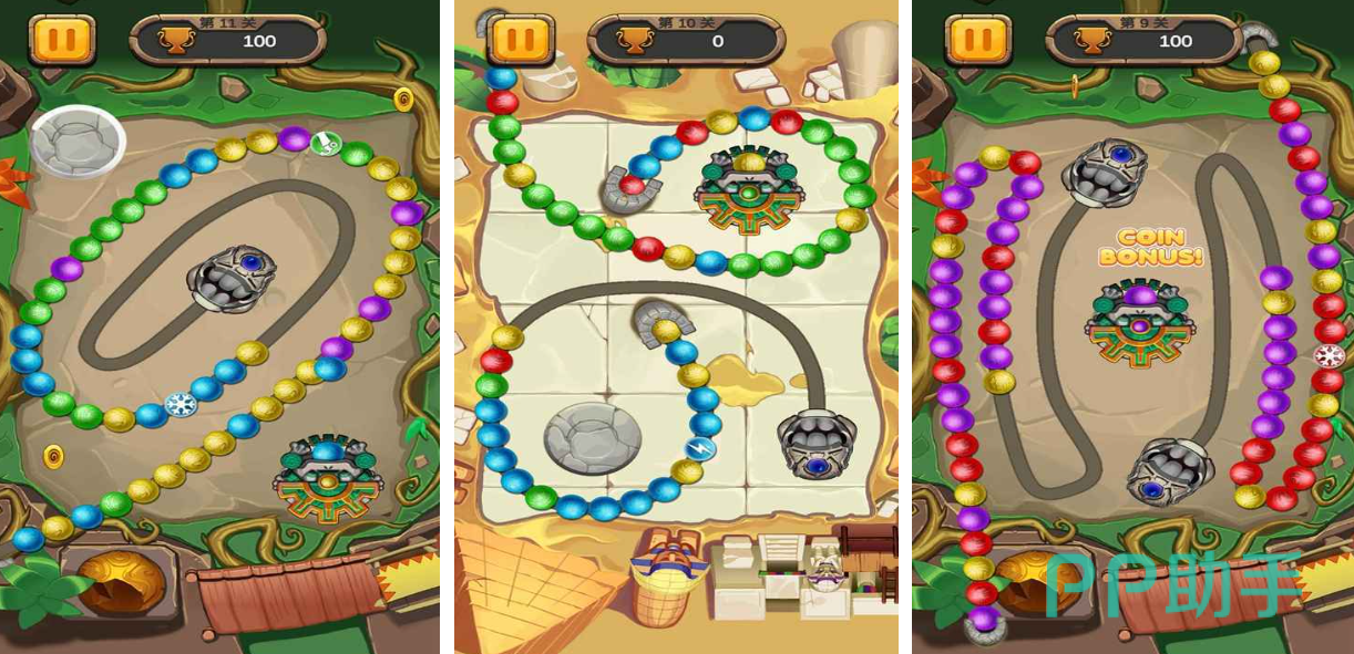 这是款在移动端获得过无数荣誉的蒙特祖玛系列第三代作品,引人入胜的消除过程令玩家放下了所有的烦恼,上百个消除地图也给大家提供了惊人的视觉效果,消除时触发的爆炸音效令人血脉喷张,多元化的消除元素也让众多消除手游粉丝如痴如醉,上手难度较低仅需点触炮筒的开炮方向即可,休闲解压的消除性质吸引了很多平时压力不小的朋友。