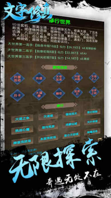 高自由度的休闲放置类游戏,以文字对话为核心玩法。在这里,玩家可以通过深入剧情,感受精神上的渡劫飞升之快感。游戏内包含多样的宗门选择和上千种修炼法门,极大拓展了游戏的视野和玩法深度。自由探索与挂机战斗的结合,进一步增强了游戏的趣味性和挑战性。通过文字细腻地描绘场景与战斗过程,为玩家带来全新的游戏体验。这个仙侠世界的广阔与自由,以及剧情的可自定义性,都让人沉迷其中。