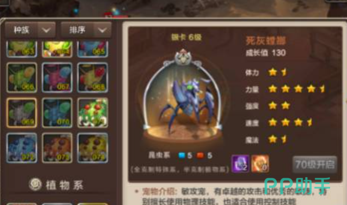 由于死灰螳螂的整体力量跟速度都是非常棒的,所以玩家在挑选宠物的时候直接选择死灰螳螂。除此以外,死灰螳螂的技能可能各有不同,玩家在选择具体技能的时候可以根据自身的需求。