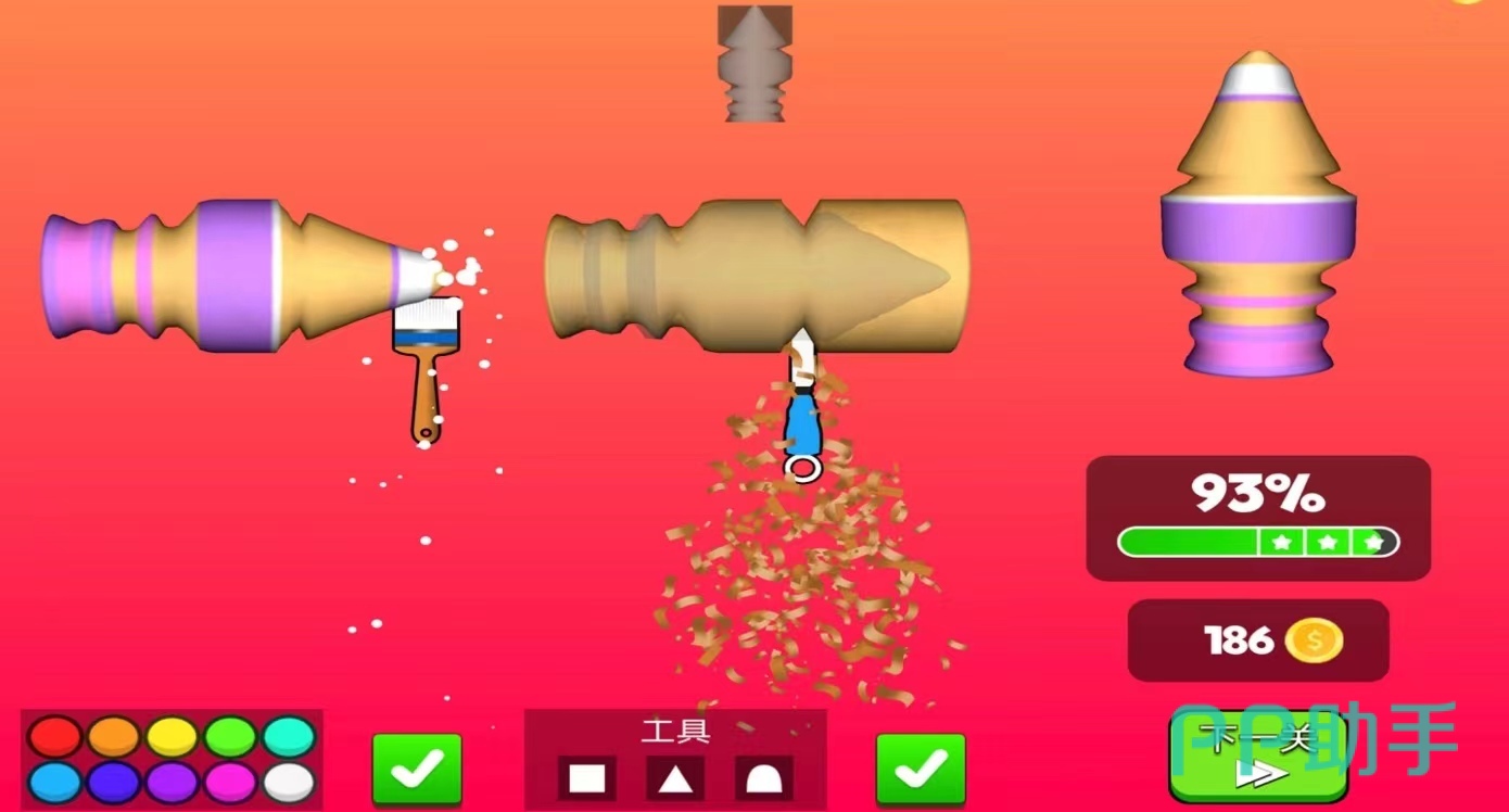 《木头旋旋旋》可以把这个游戏当做一个木工模拟器,玩家如果想要什么物品都可以进行雕刻,可以随意的把木头进行切割,玩家也可以在雕刻好之后涂上好看的颜色。在每一个关卡中会被玩家设定任务,可以查看完成的程度如何,会在每一关为玩家带来金币的奖励。可以创作出非常多的工艺品,可以360度无死角的进行雕刻。
