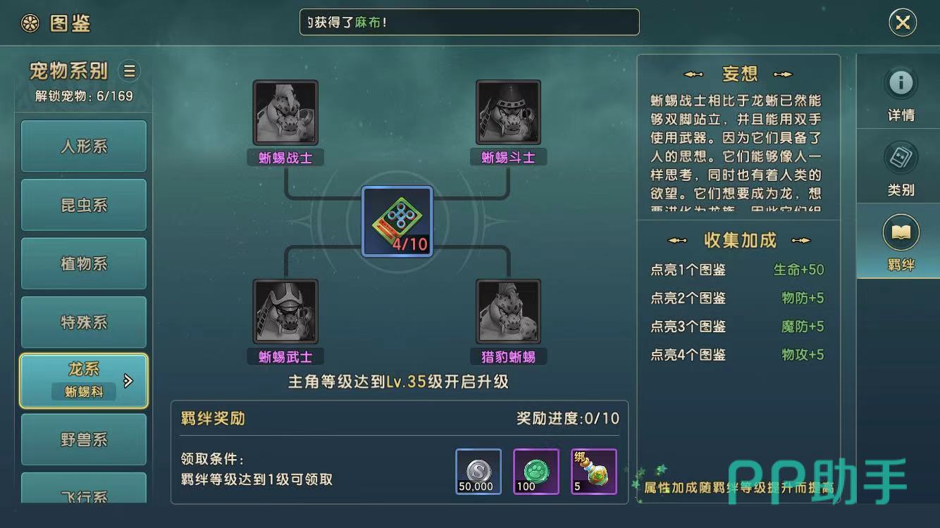 在集齐1-4个宠物后分别+50生命值、+5物防、+5魔防、+5物攻。