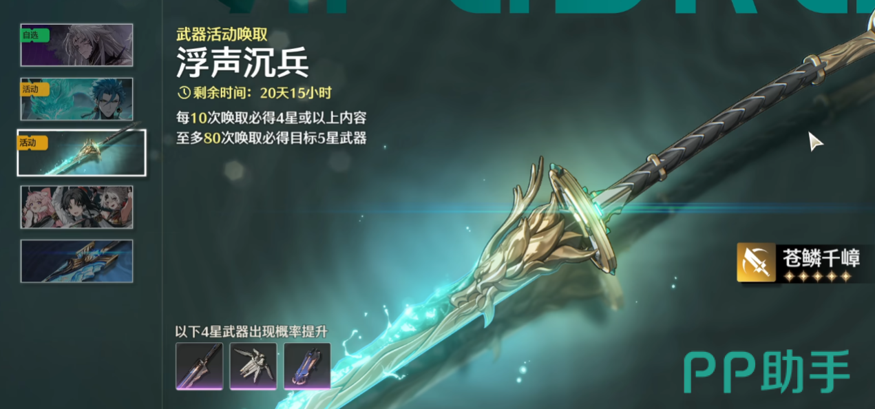 其次活动武器池中的这把武器也是一样,都是八十抽保底,如果运气好的话也是可以提前出的,一般小保底在五十抽左右就能出,有折扣的情况下可以缩减至四十次,整体来说出五星武器的概率还是比较高的。