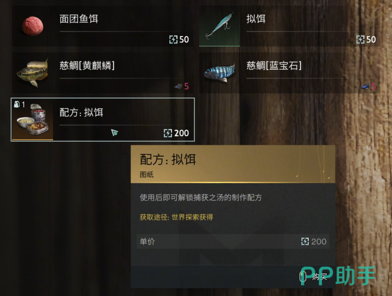 首先第一个比较便利的方法就是直接买了,大家需要去到迈尔市集的左下方,找到破碎三角洲进入。到达之后会有个NPC专门卖鱼饵的,跟他互动一下,就可以看见里面有鱼饵和对应的配方卖了,能买现成的,也可以买拟饵配方自己制作。