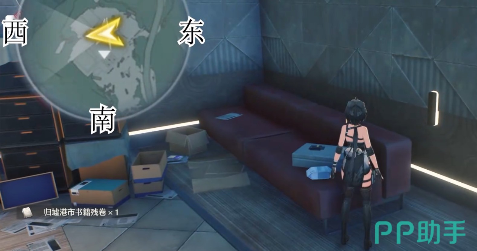 然后就是归墟港市区域。先到归墟港市落定岭左侧的传送点位,往东方向看,走到卡车后方的门,进门后在右前方的桌子上有一本书。继续打开地图传送到研究所的中枢信标点位,往地图的西北方向飞,在前方能看到有个大建筑物,进去其右侧的小门。进门后往前走,再走进建筑物的大门,随后地图西方向又有个小门。进入小门后,右前方的红色沙发上有一个残卷。