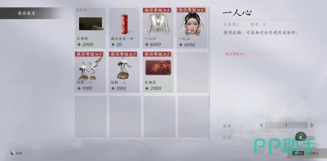另外结成侠侣后,会开启额外的侠侣商店,通过消耗“侠侣值”能兑换一些道具、婚纱时装之类。