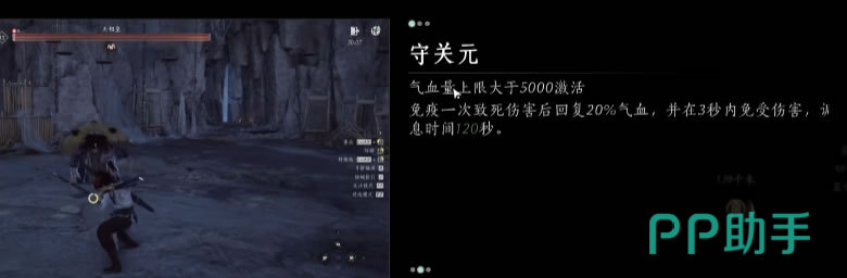 另外如果对操作不自信,还可以对装备进行叠音,除了弓箭和扳指,其他都可以尽量升到最高级。防具优先升胸甲,能增加大量气血。如果气血提升到5000以上,可以获得被动技能“守关元”,效果是获得一次免死,同时还能恢复20%气血,在战斗中关键时候能救一命。