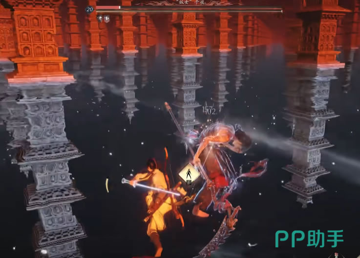 游戏里还有一些特殊技巧可以帮助应对:Boss有时候会飞上天,然后一个下劈,此时使用点穴手可以化解掉。