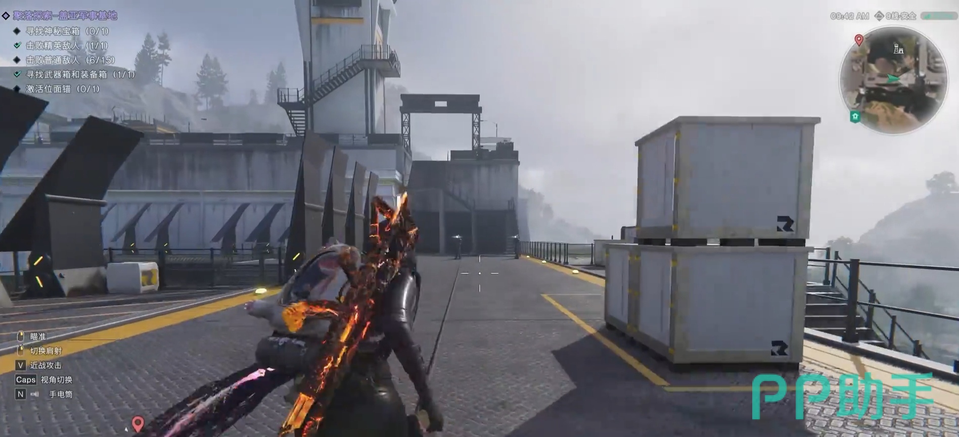 然后还是主要往地图的右上方跑,可以根据右上角的小地图来注意自己的移动方向,途中会穿过两道门,最后一道门会需要门禁卡,门禁卡是通过击杀防爆员获得的,难度不高。拿到门禁卡后,就可以进入仓库中,开启防爆玻璃门,就能拿到神秘宝箱了,神秘宝箱附近还有个装备箱。