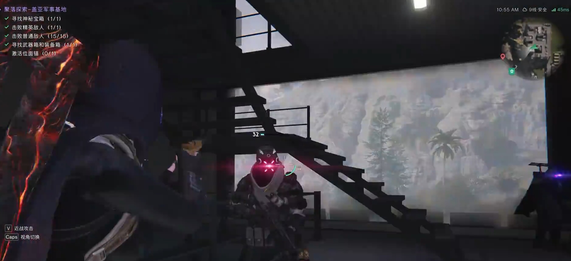 拾取完了之后,就可以直接从飞机平台跳下来,进入大门出,前往寻找神秘宝箱,这也是该地图中,玩家需要完成的一个任务。玩家要沿着通道一直跑,直至第二层平台,由于这里是有个地势在的,所以小伙伴们可能会遇到狙击手这种高伤害的敌人,一旦看到他们,就要及时点掉,防止被射杀。