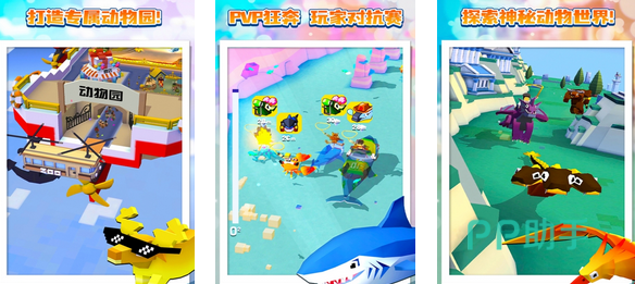 在3D像素画风中,玩家操控各式各样的动物进行奔跑。动物种类众多,不仅有鲨鱼和牛羊,玩家还可以解锁稀有动物,比如说凤凰宝宝等等。除了跑酷之外,玩家还可以上演各种动物的养成以及形状的改造。操作玩法主打有趣,玩家可实现单手套圈,也可以直接骑在各种可以奔跑的动物上。