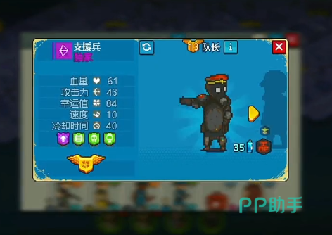 最后一个特种兵着推荐使用队长。队长有着强大的支援能力,它可以瞬间让其他特种兵热血沸腾增加100%的属性。就能够造成更多的伤害,另外坦克也可以承担起更多的防御责任。另外队长的输出能力算不强,但是可以轻松指挥所有人发起进攻。