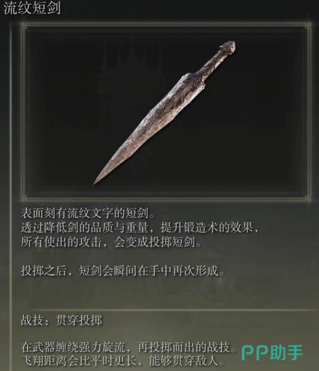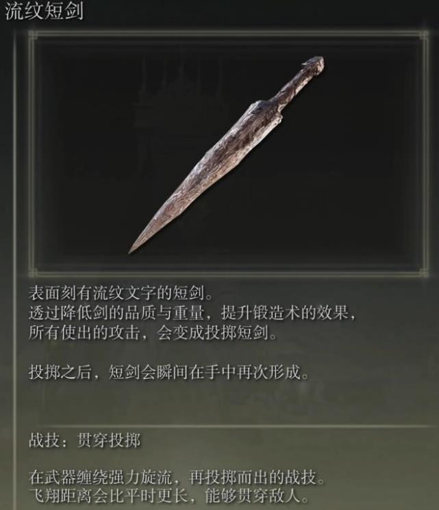 以上所为大家介绍的就是艾尔登法环黄金树之影流纹短剑。这一个武器获取的方法真的特别的简单,并没有什么复杂之处,玩家只要掌握以上的技巧就可以获取,在获取好武器之后,日常的操作就会变得更简单。