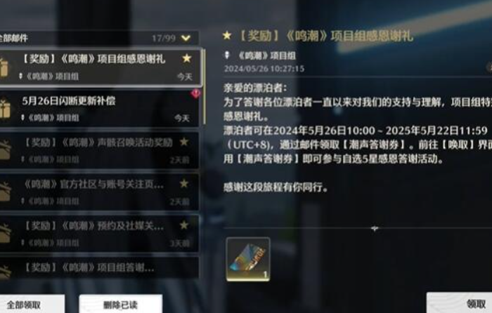鸣潮这款游戏上线之后,很多通过预约注册的玩家都能够受到游戏上线之后的精美大礼和奖励,很多玩家就比较好奇这款游戏的邮箱在哪里?鸣潮邮箱在哪就是本期内容的主题,小编会带大家了解到该邮箱的位置一起来看。