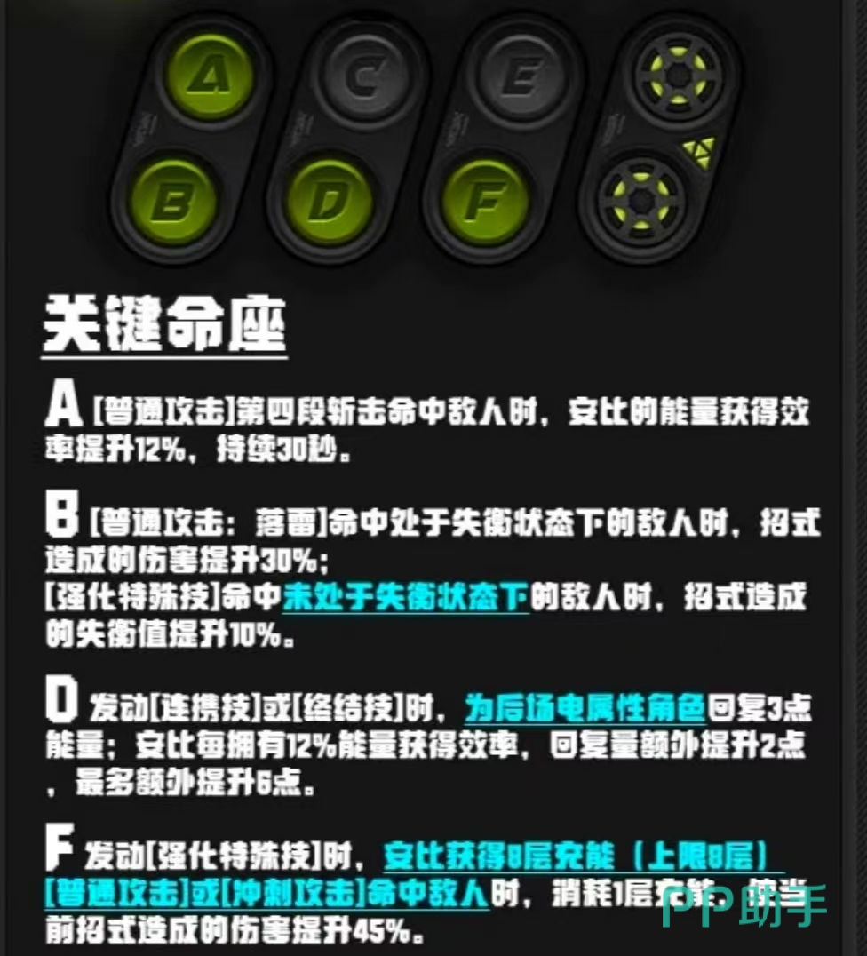 那么在选择角色后,是不是就只有一两种玩法可以选择了呢?很多玩家在看到绝区零的角色技能不多时,就有了这样的担忧,这时就需要介绍我们的命座系统了,一个角色最多可以拥有六个不同的命座,且这些命座的效果完全不同。