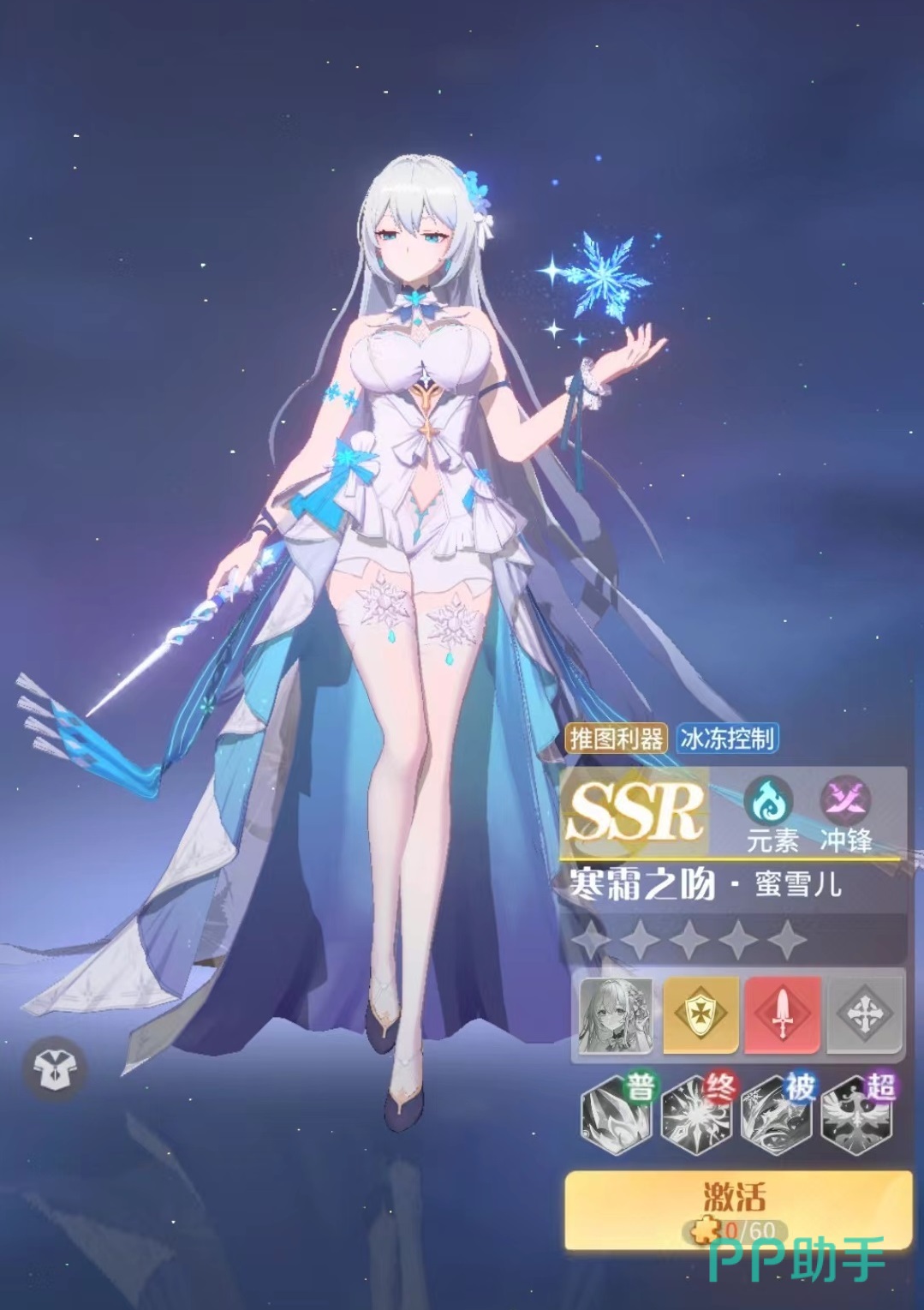 寒霜之吻蜜雪儿可以说是目前游戏中非常热门的人物,也是官方主推的人选,非常擅长放在后排输出伤害。无论是在前期用自己技能带来的群体伤害去快速推图,还是在pk时发挥出控制优势,让对方难以输出,都是这名角色的特点。而且本身也是最顶尖的SSR人物,属性成长方面也是一流,完全具有成为核心的潜力,同时也是现在很多阵容搭配中的绝对核心。