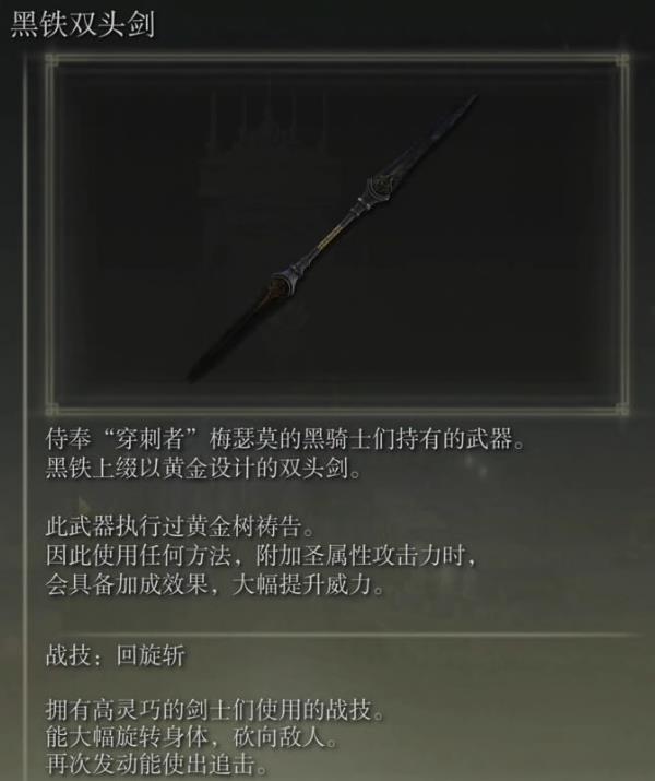 艾尔登法环黄金树之影黑铁双头剑是很多玩家都比较关注的一把武器,这把武器从多方面来看都比较有优势,而且实力很出色,玩家如果有兴趣就别忽视。可以直接到游戏中去体验一番,相信这把武器不会让大家失望。