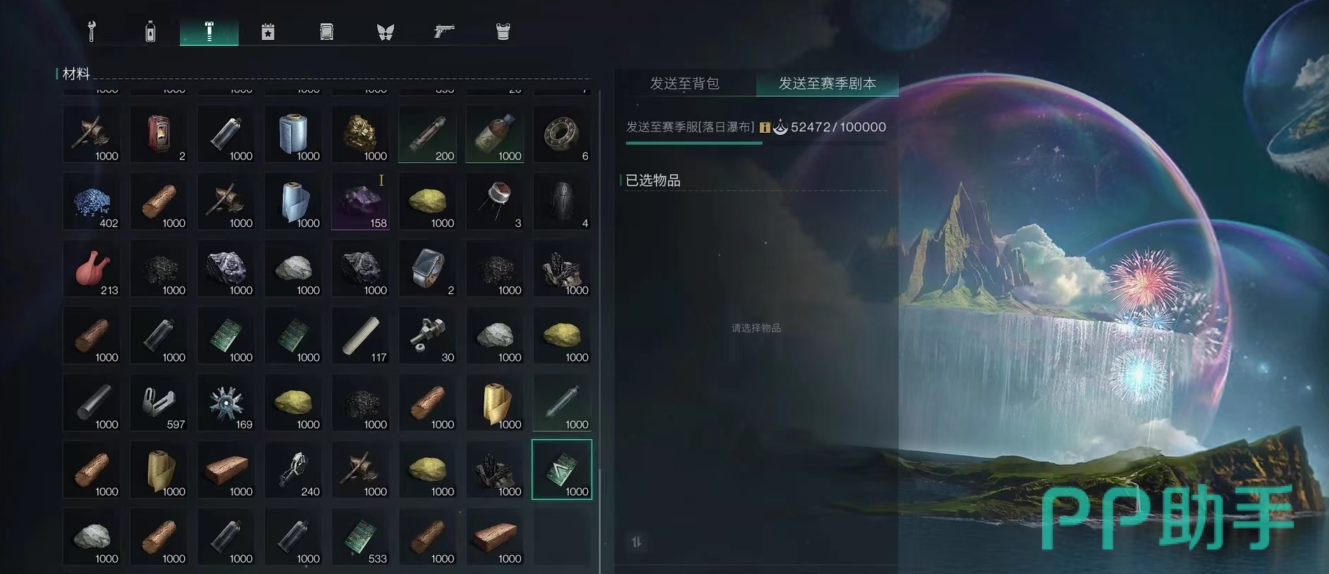 玩家可以在游戏的主页面的上方点击一个小岛状图标,直接进入永恒岛界面,大家可以看到界面中出现了进入永恒岛,岛屿物流和岛屿管理这三个选项。其中最重要的作用就是岛屿物流。大家可以看到岛屿物流中有两个选项,分别是发送至背包和发送至赛季剧本,这是两项很重要的功能。在发送到赛季剧本中有个点数,这就代表着大家现在已经使用的点数。点数指的就是转移上个赛季的材料,大家在上个赛季积累材料可以通过这项功能直接转移到本赛季中,这就是为什么有很多玩家等级不高,却可以使用高级枪械的原因,就是使用这样的功能直接转移而来的。