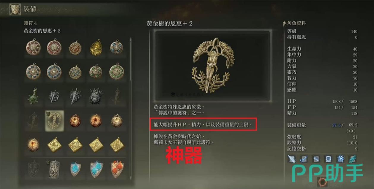 艾尔登法环里,玩家可以收集战斗武器和防御装备,战斗武器提升玩家的攻击速度力量等属性,防御装备增加玩家的血量抗击打属性。在防御装备中,有一个携带方便的装备,玩家佩戴之后可以获得收益,提升回血量,这就是影护符。
