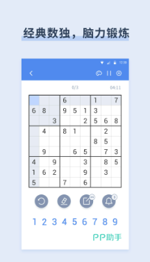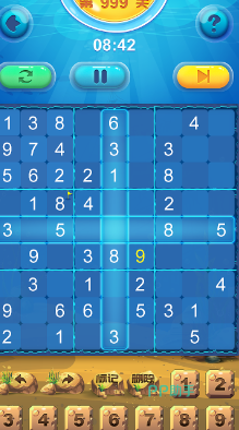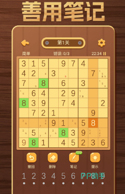 游戏中,玩家将面对经典的九宫格大宫格,通过屏幕下方的数字键盘输入1至9的数字,同时配备有橡皮擦和铅笔等辅助工具,供玩家自由选择使用。游戏不仅能够有效锻炼玩家的思维敏捷性,而且非常适合在闲暇之余进行放松和娱乐。