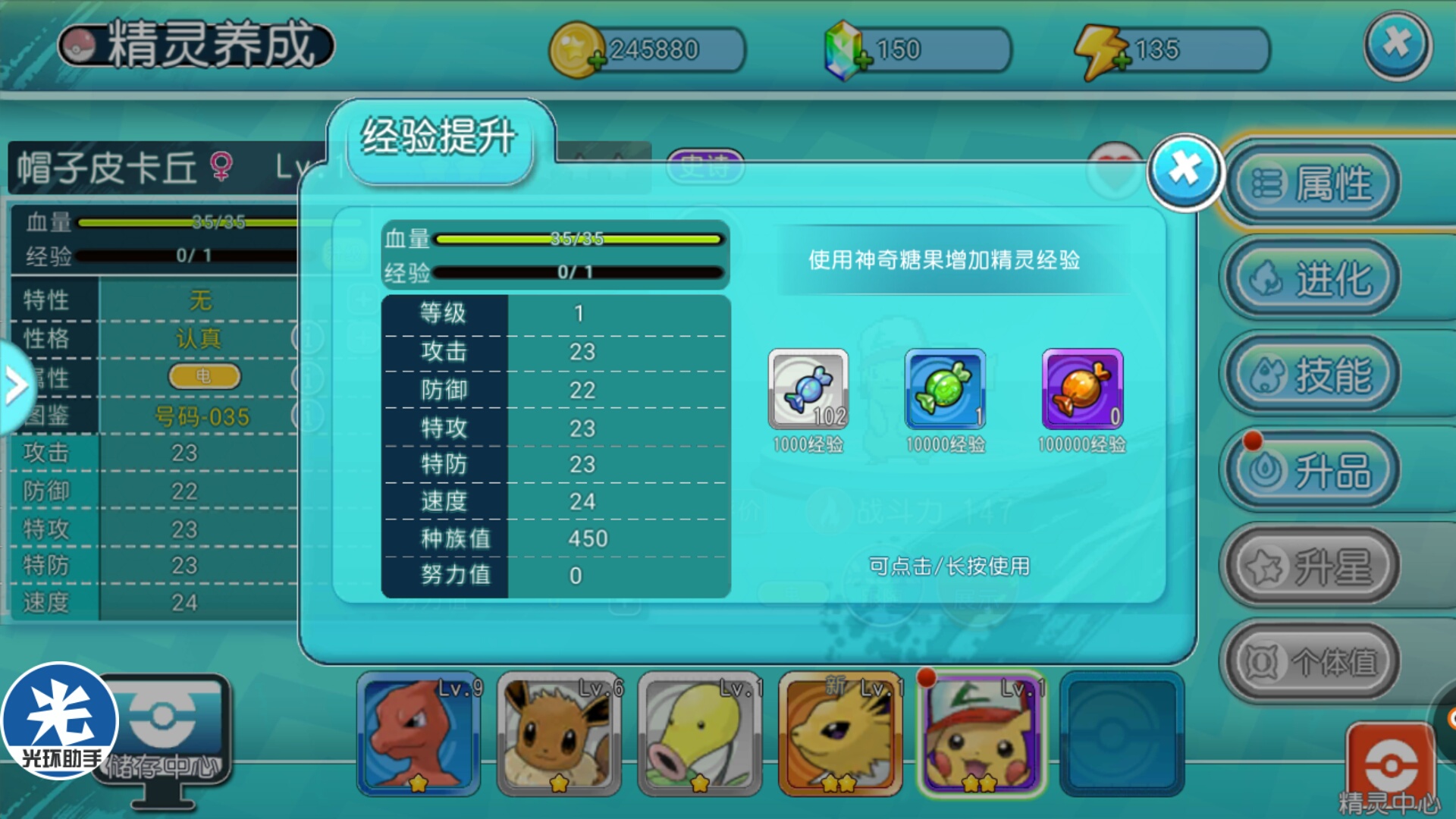 小型神奇糖果可以增加精灵的1000经验,中等则可以增加10000经验,大型增加100000经验。