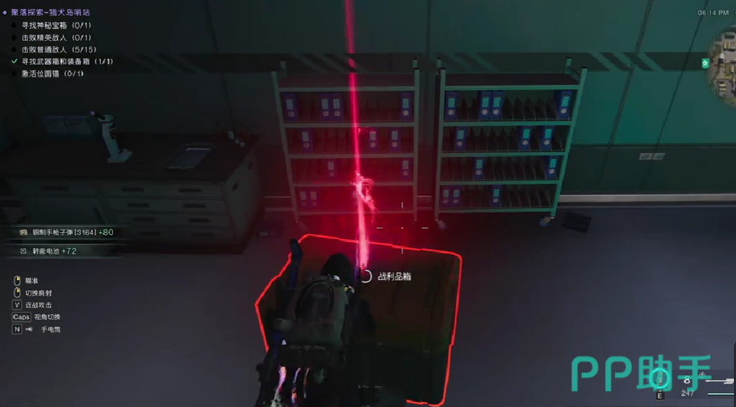 首先玩家们来到猎泉岛的路口的时候,一直往前往右边的方向走找到机房,看到天桥的下面从那个路口进入进入之后往左走,找到一个小房子。小房子的外围是有一个小门的玩家进入之后就能够看到里面分布的神秘宝箱和装备箱,这两个箱子都是被关在里面。