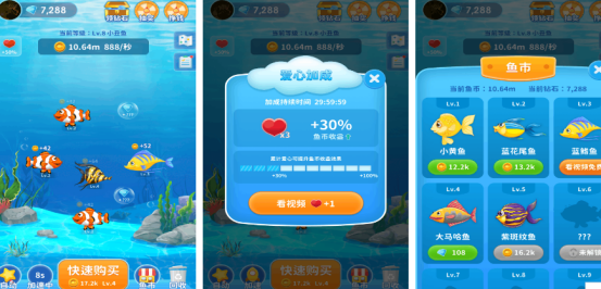 每当来到水族馆都会被五颜六色的鱼儿深深所吸引,海底鱼类较为丰富,这里的鱼儿不仅特别漂亮,看上去也非常可爱,小伙伴们很想饲养。这款游戏带着玩家来到精美的水底世界,其中有超级有趣就可爱的鱼群,有特色不同的小金鱼。将养鱼模式与合成玩法完美的相结合,小伙伴们需要通过拖拖拽拽的方式将鱼类合成,这样能够解锁不同种类的鱼儿,还有很多罕见的鱼类,等待玩家前来挖掘。
