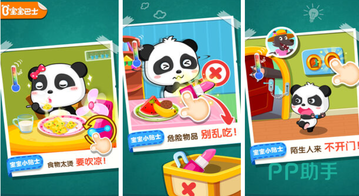 这款宝宝教育类游戏致力于帮助孩子掌握更多的家居安全知识,比如医药包的使用和家用电器的危害等等,各种情景模拟让孩子了解了居家安全的重要性,各种动画片形式的错误展示+正确引导就能让孩子学习保护自己,本作还具备安全动画以及安全儿歌模式会让低龄孩子乐在其中,你也跟孩子一起学习学习居家安全吧。