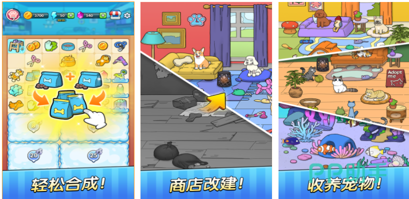 在这款作品中玩家会成为宠物店的经营管理者与动物进行沟通,通过合成升级的方式就可以改造自己的宠物店,小猫咪、小丑鱼甚至是冷血动物都可以在自己的宠物店进行饲养,温馨可爱的卡通美术风格是这款宠物养成手游主要亮点,种类多样的动物会让玩家感受到自由养成的乐趣,点触屏幕与宠物互动的设定具备着极强的代入感。
