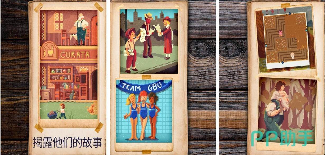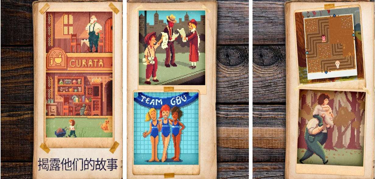 这款休闲手游将拍照片和拼图的模式进行了完美的组合,你的任务就是将一张张碎片相片进行还原,解谜与剧情向元素进行的结合也十分温馨,拍摄的相片图片都是像素可爱风格的,将这些图片还原完整的过程代入感十足,每还原一张照片都会解锁一段温馨的小故事,利用拼图讲述故事的设定还是很罕见的。
