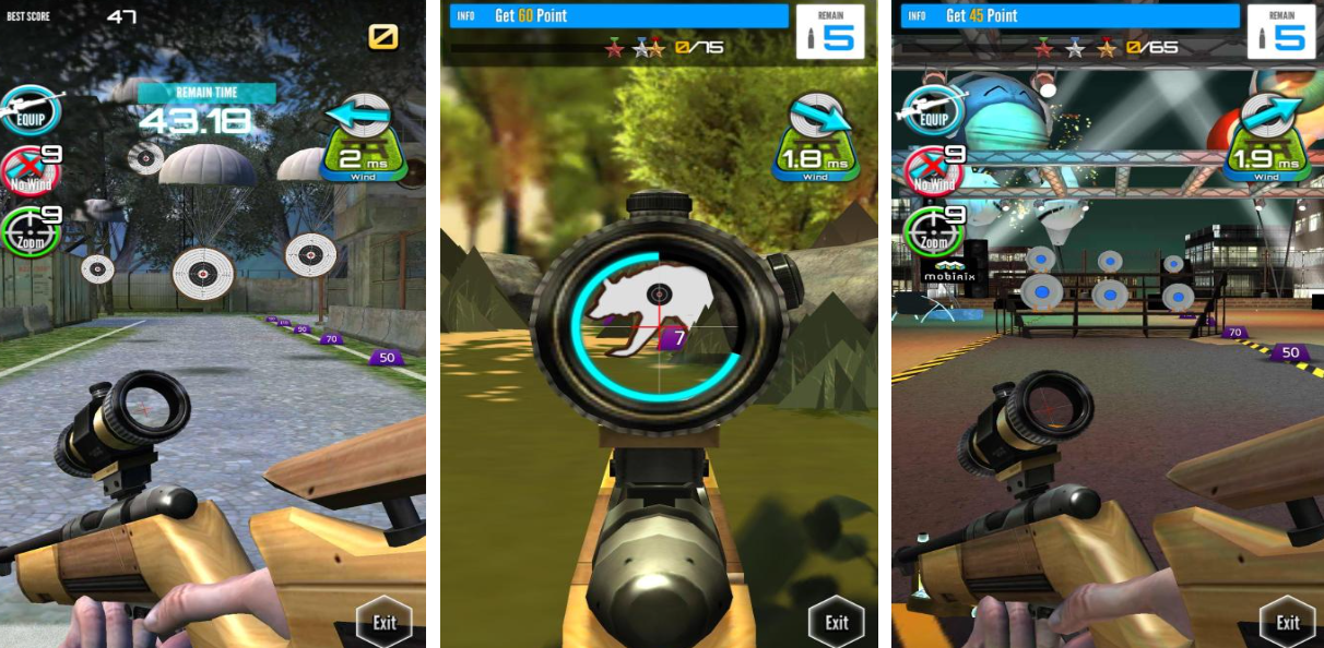 射击之王是款支持玩家参加狙击比赛的硬核射击手游,较小内存却为玩家呈现出三维立体的视觉效果,射击武器很丰富而且狙击目标也相当多样化,身临其境参加狙击比赛的感觉令狙击高手直呼过瘾,各种任务目标需要玩家精准瞄准才能射中,枪械开火音效和换子弹的动作都无比逼真,各位狙击高手挑战一下这款狙击比赛神作吧。