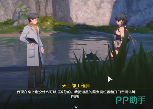 护送过程可能稍显漫长,但只要坚持并适时使用战斗技能,如升级合一闪和迎风生长等,就能安全到达目的地。工程师会走到一个河边,跟我们对话,对话完成之后,他将帮助玩家解锁藏宝洞的门。我们得到信息之后,就可以去到藏宝洞了,一旦门被打开,里面通常会有一些宝贵的资源和一个宝箱,供玩家探索和收集。