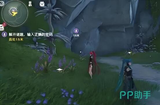 找到了安全屋之后,接下来就需要找到密码,要打开安全屋才能进去,密码在安全屋门口的位置会有一定的线索的,需要玩家先跟吟霖进行对话就可以获得相应的提示,而这个提示其实就是附近的紫色花朵的数量。