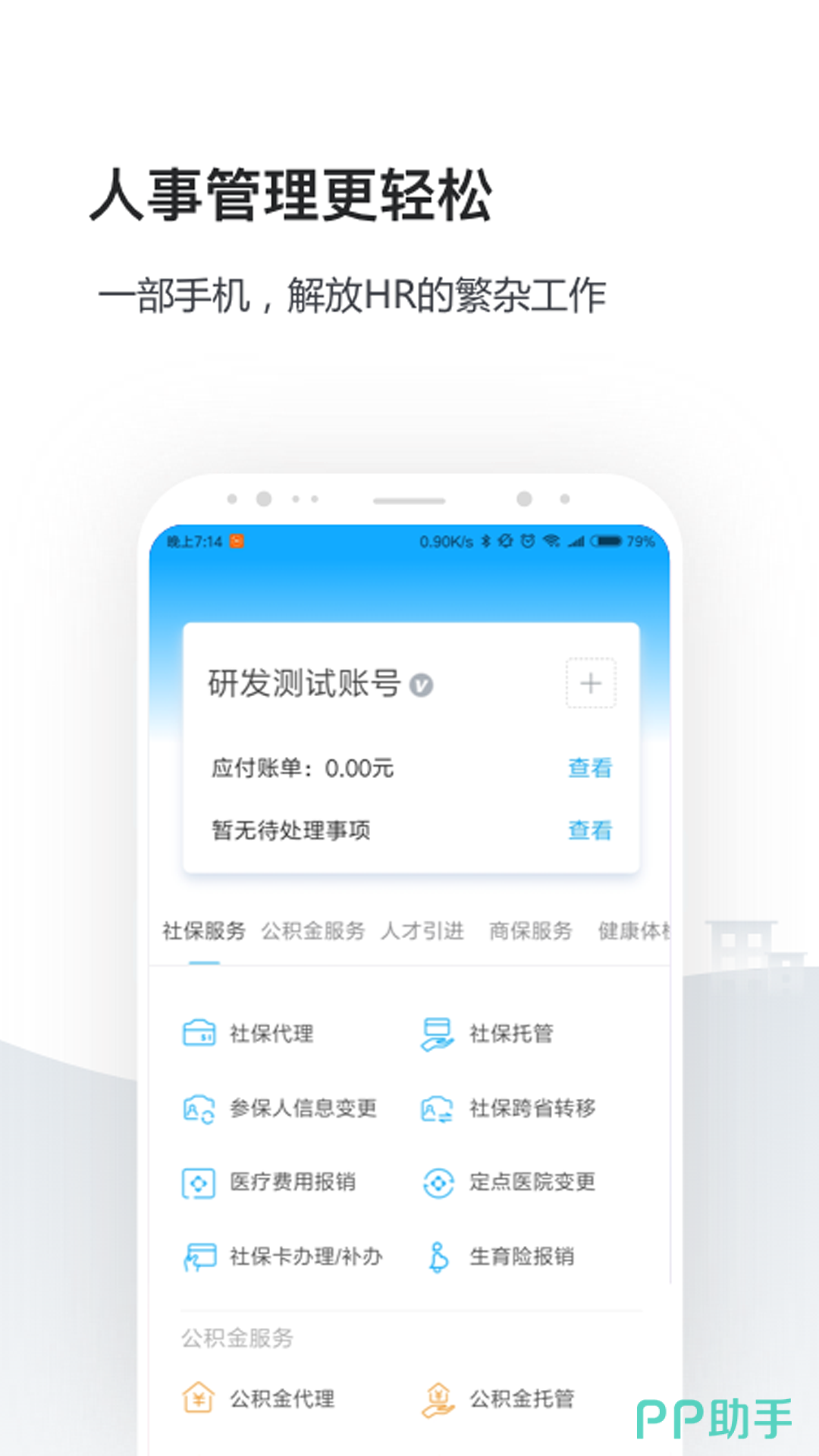 人事社保管家是一个致力于人事服务20年的正规上市公司,它不仅提供社会保险办理和社保托管等服务,还可以提供人力外包与个税申报等众多服务,且服务公开透明价格实惠,是很专业的社保服务应用。