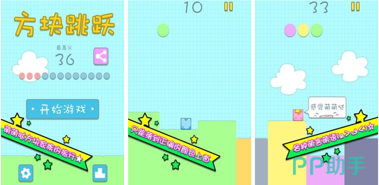 本作是款具备小清晰卡通风格的经典横版冒险游戏,简单操作加上清新可爱的画风吸引了超多粉丝,控制正方体跳跃闯关的机制极具梦幻感,背景色彩鲜艳而且方块的颜色也可以DIY切换,超级舒适的视觉效果、操作机制都是这款作品的特色,本作关卡设定颇多能让大家尽情享受闯关的快乐,小方块在冒险过程中还会说出各种萌点十足的台词。