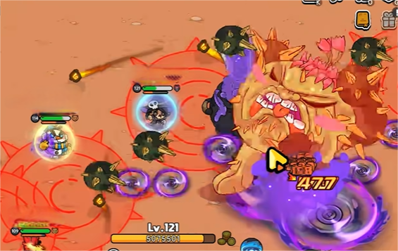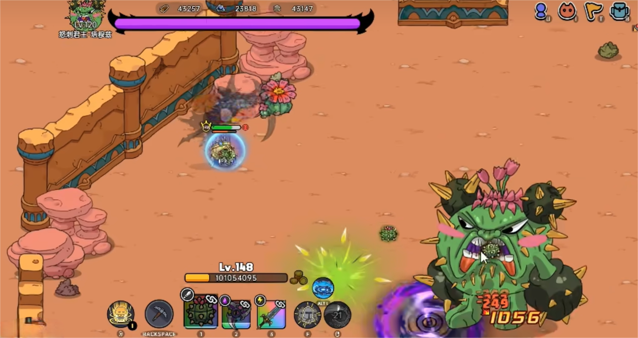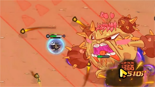 boss在进行该技能释放时,场上会出现小红圈预警,随后便会在红圈附近产生小仙人掌,该技能本身并无伤害。但是玩家依旧要快速清理掉小仙人掌,因为接近小仙人掌会受到伤害,走位受到了极大限制,同时小仙人掌存在数量越多,boss在后期触发回血的时候,回复血量也会越多。