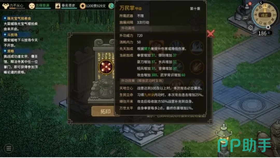 大侠立志传是一款像素风格的武侠游戏,在游戏中有非常多门派和地点,可以供玩家们进行不断的冒险,想要提升自己的能力和敏捷,需要不断的完成日常任务,而大侠立志传万民掌怎么得到,可能许多玩家对于这个还不是特别的了解,只要大家加入门派,完成相应的任务,才能够触发剧情获得,这个道具也是非常有帮助的,可以很好的提升自己的能力,下面小编就为大家带来大侠立志传万民掌获得攻略。