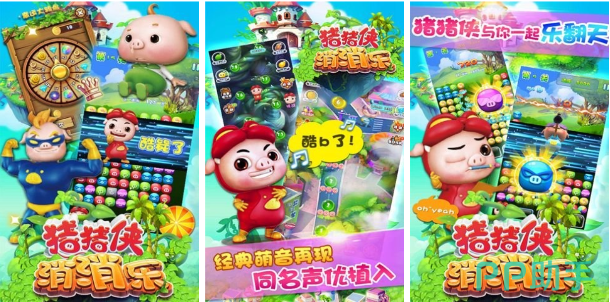 这款三消游戏是根据著名国漫猪猪侠打造的,猪猪侠动画里的众多可爱小猪会陪你勇闯关卡,消除障碍物收集金蛋就是玩家的唯一任务,多种道具的加持为大家提供了许多帮助,萌系的音效与特殊的视觉特效也令玩家耳目一新,精美的3DUI界面彰显出本作出色的做工,你也下载本作跟萌萌的猪猪侠一起进行消除吧。