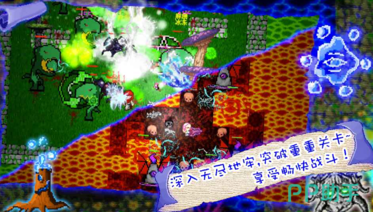 这款像素风格的上帝视角魔幻ARPG游戏内容十分硬核,会给大家提供数量极多的武器以及海量技能,你可以化身帅气勇者组合各种特殊的技能与恶魔进行战斗,光怪陆离的主线剧情和丰富的玩法模式增加了可玩性,随着游戏的进度玩家将面对能力不同的各种敌人,百搭的战斗系统与宠物的设定也是本作的点睛之笔。