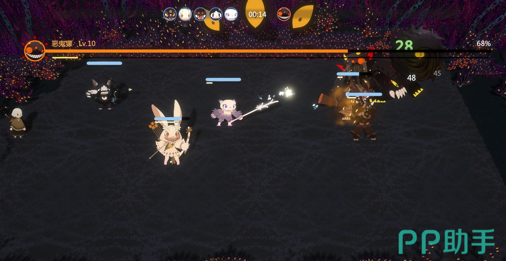 最后说下打法。小编建议玩家使用大棒狈和勇力牛当前排抗伤害,然后新月枭当辅助,输出则是由月桂兔和夜哨猫来负责。大棒狈技能自带回血效果,生存能力极强,而勇力牛则是血量面板极高,用来当肉盾再适合不过了。新月枭则是可以回血,提升前排坦度。月桂兔和夜哨猫则是远程输出妖精,可以对邪魔造成大量伤害。如果玩家因为前排妖精练度不够,抗不住邪魔的伤害。可以在战斗中使用回春符给妖精回血。玩家像这样组建小队就能轻松打过恶鬼獴了。