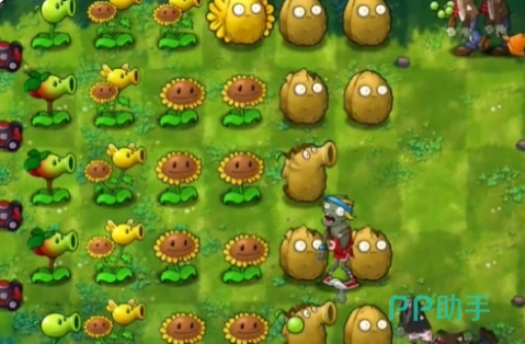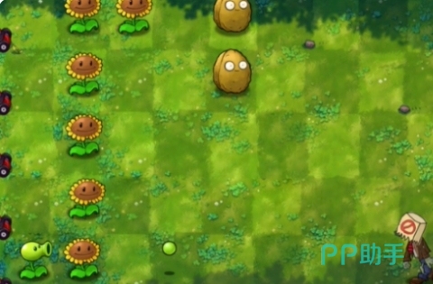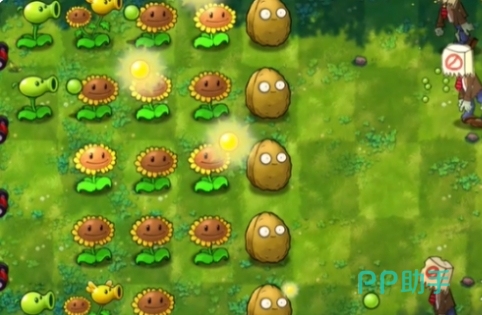 游戏一开始,玩家应该在场地的左侧种植一列向日葵,以确保有足够的阳光供应。随后,在右侧种植两个坚果,它们将成为抵御僵尸进攻的第一道防线。