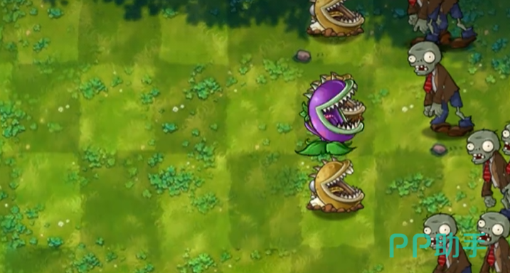 4,大嘴花:豌豆射手与食人花的结合,能吞掉僵尸并释放僵尸球进行攻击。