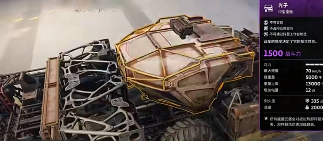 想要把救星霰弹枪的威力给全部发挥出来的话在配件上就必须选择合适的配件了,战车我们可以选择中型座舱比如光子,光子战车的战斗力高达1500点,最大的速度可以到达70千米每秒,最高载重量为5000千克,增加电量为12点。