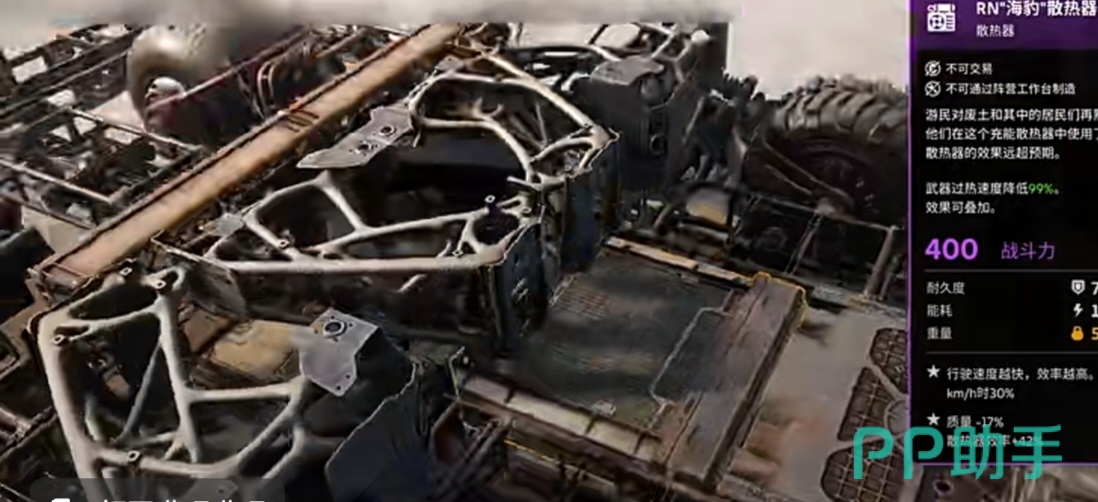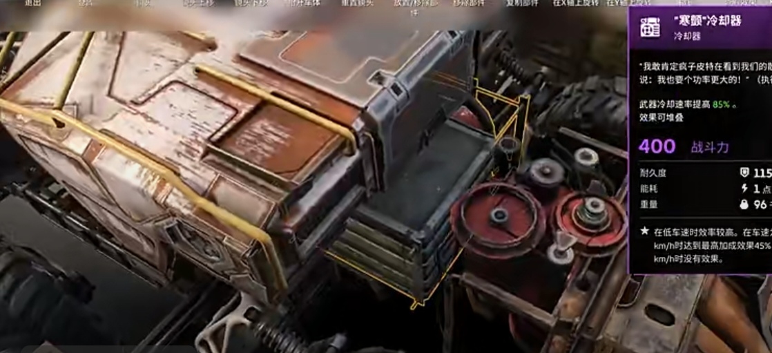 其他的武器部件可以选择2个海豹散热器、1个冷却、1个火红引擎、车轮选择4个利爪,像雷达等配件我们就按照常规选择就可以了。