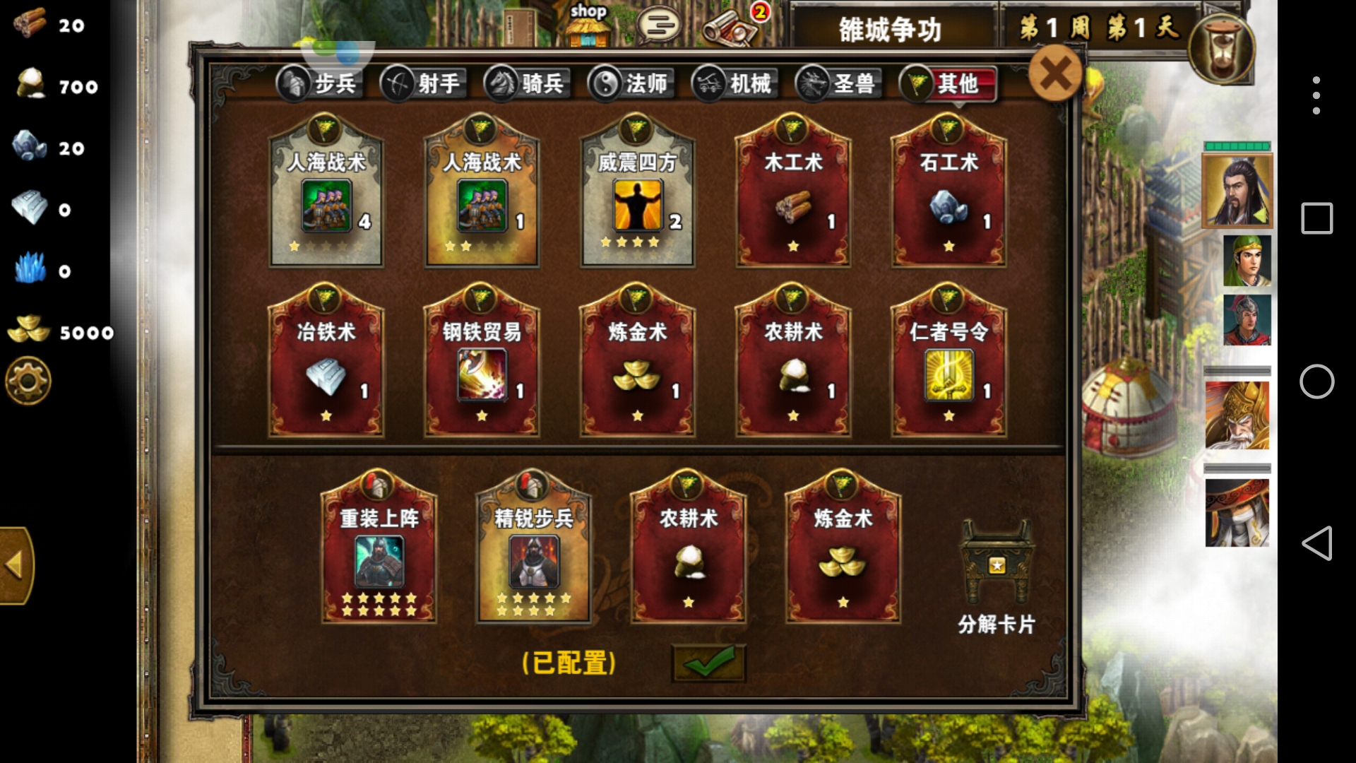 通过收集英雄卡牌,玩家可以得到很多三国时期的武将。这些武将不仅有自己的武力值、防御值和智力值,还拥有不同的技能和属性。